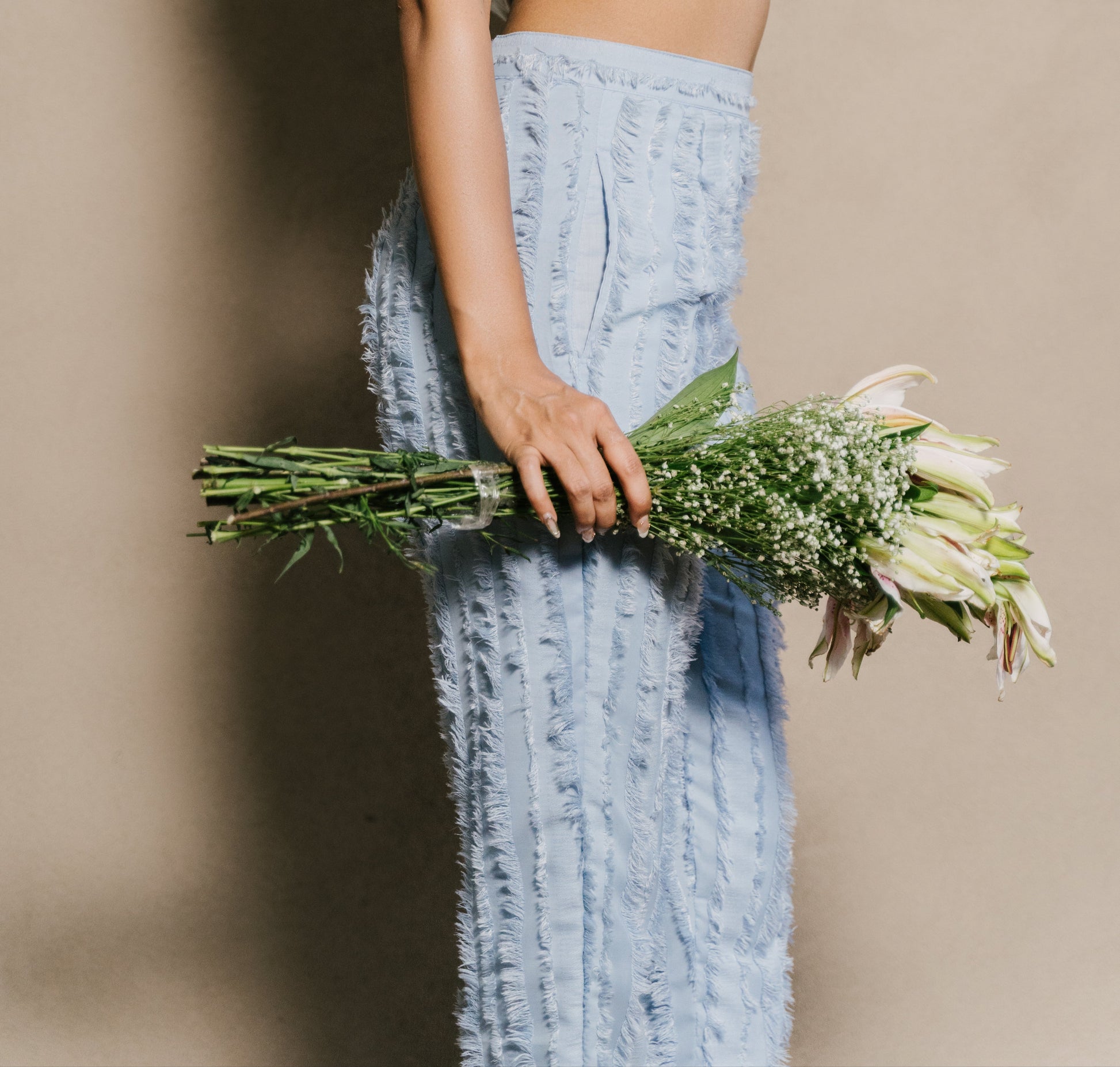 Frosty Brat Pants ❄️ Soft, flirty, and cool to the core — these icy blue, straight-leg pants are the unexpected statement your wardrobe’s been waiting for. Crafted in airy fringed georgette, they move like a breeze and serve texture with attitude. Pretty, but make it powerful.