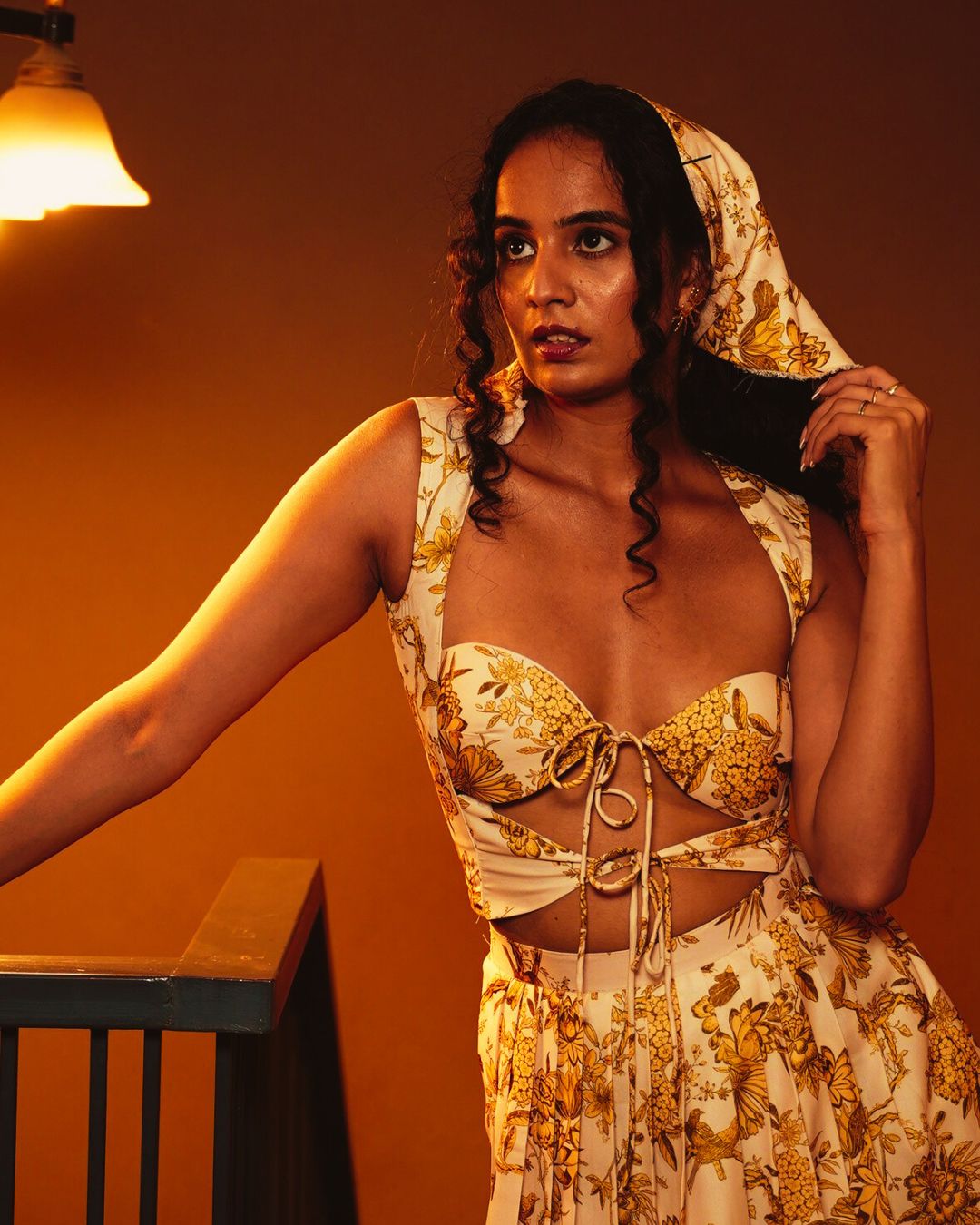 The Solstice Song Top sings in golden florals on creamy satin, with playful cutouts & lace-up ties that flirt with nostalgia. A sun-soaked piece🌅